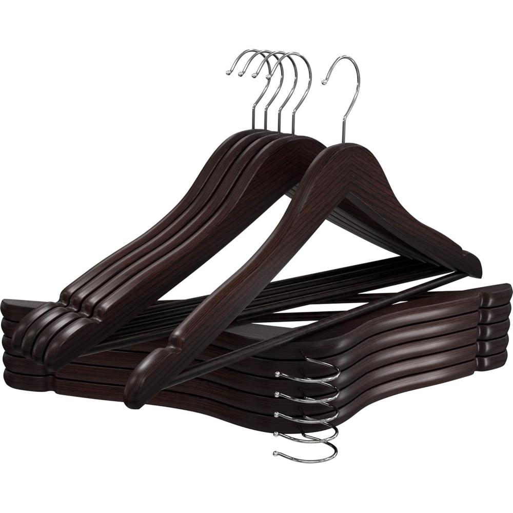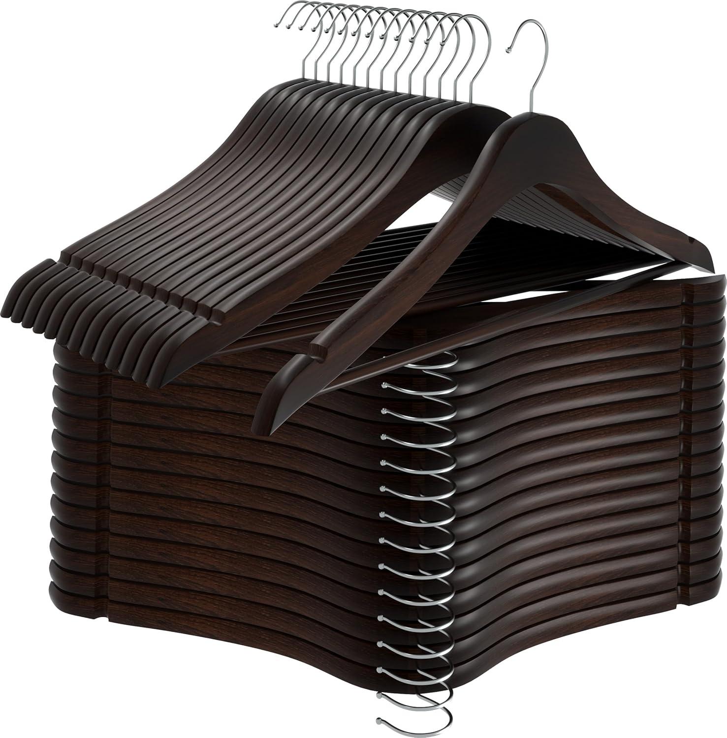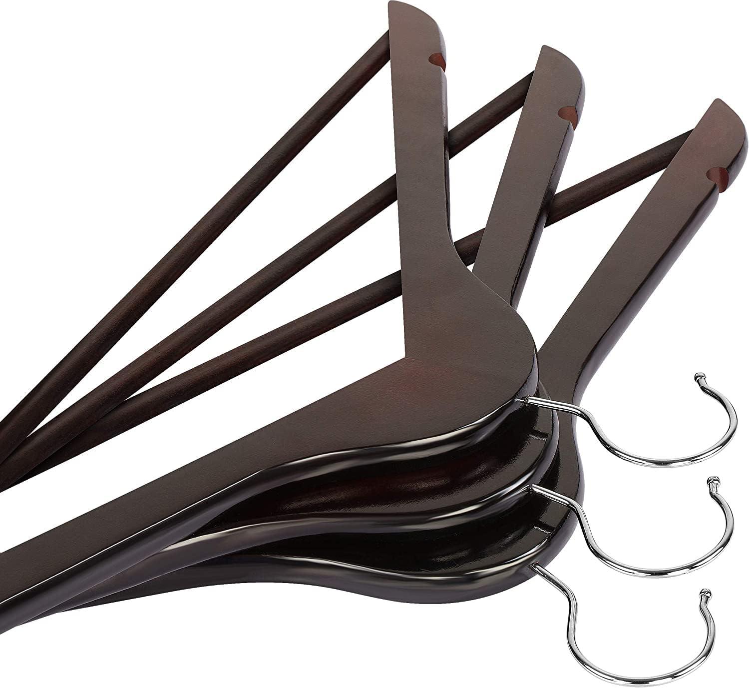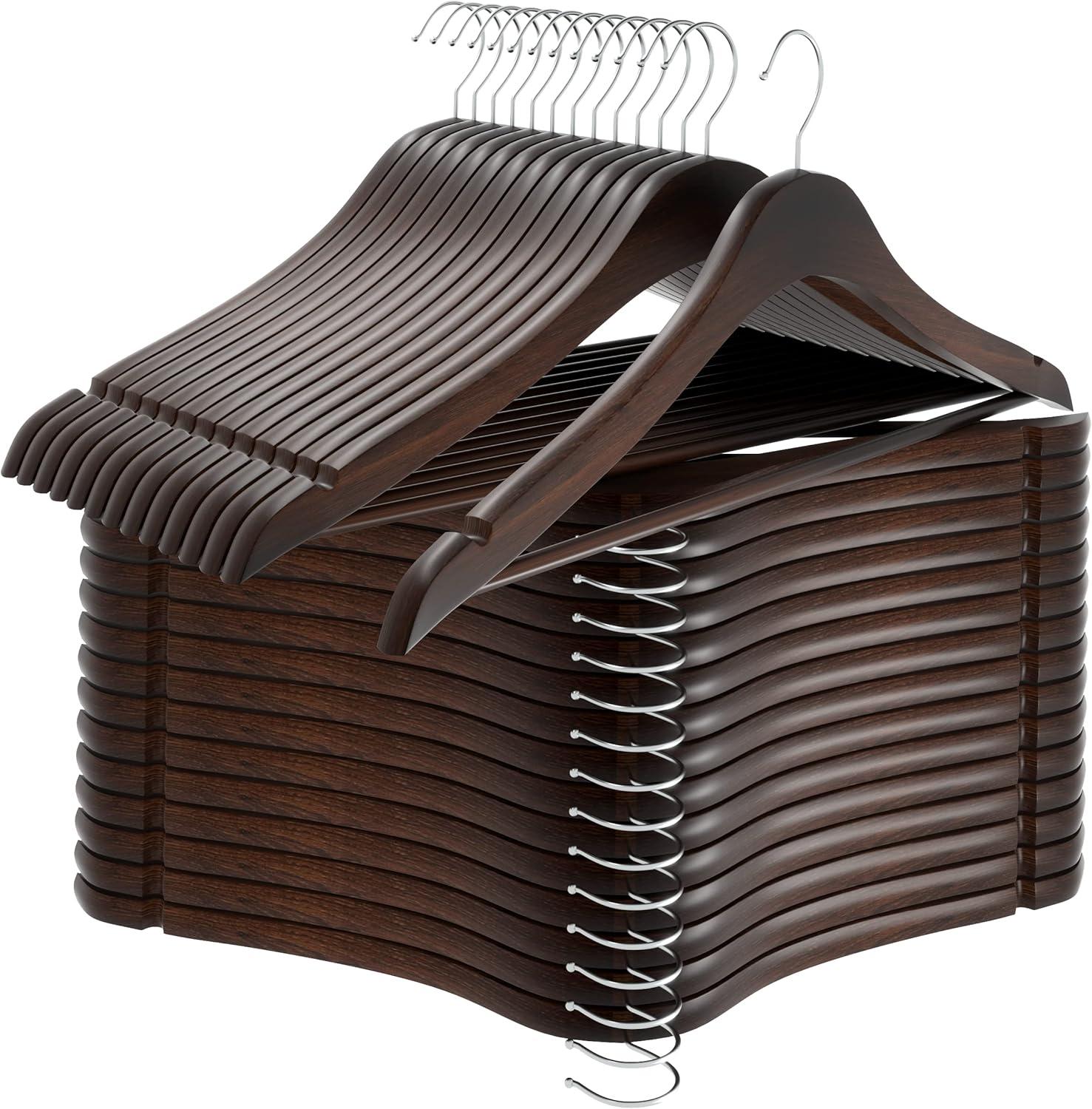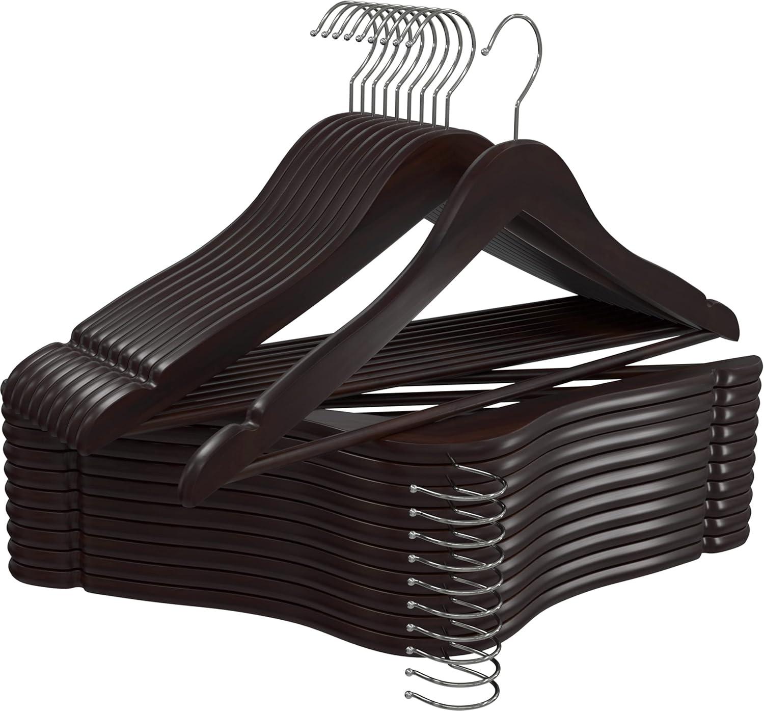 Versatile Function – These wood hangers serve multiple purposes for pants, suits, sweaters, jeans & other strappy clothes. Their contoured shoulders maintain fabric integrity, while the polished surface enhances closet appeal with lasting durability.