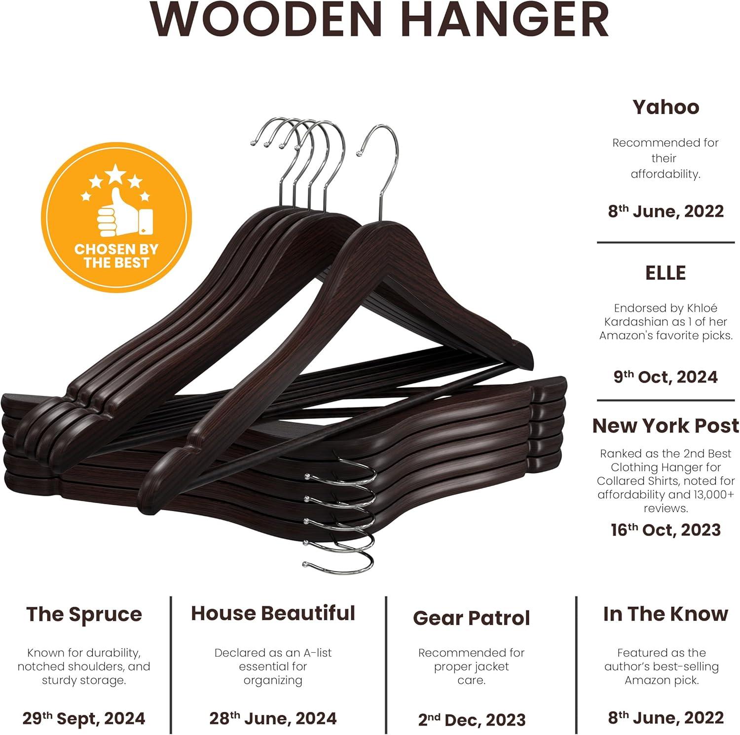 Wooden Coat Hangers For Closet – These wooden hangers for clothes are made from solid wood to hold jackets, shirts, and suits without bending. Contoured shoulders distribute weight evenly to maintain shape and prevent shoulder marks or sagging, while a smooth finish protects fabrics from snags.