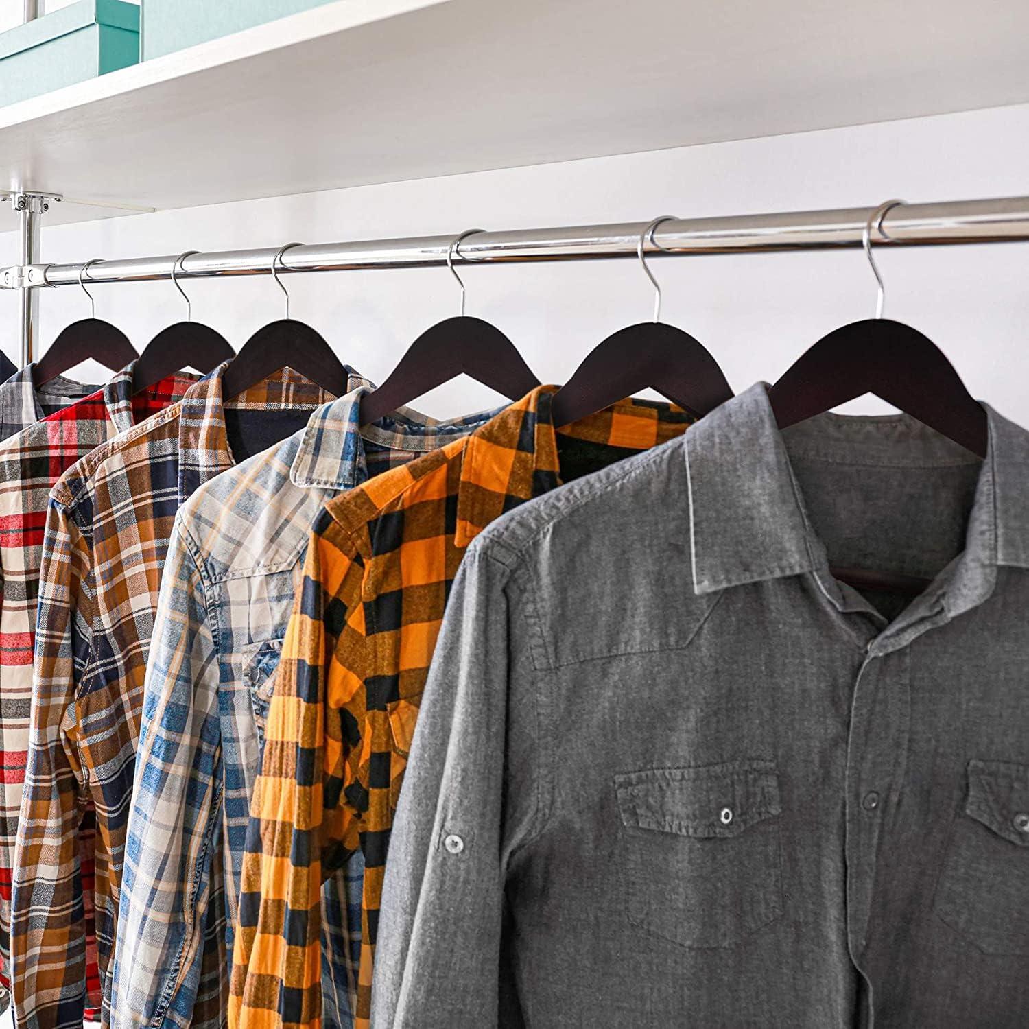 Closet Hangers With Rotating Hook – The 360° chrome hook rotates smoothly, giving easy access to every garment without removing these heavy duty clothes hangers. These suit hangers allow quick outfit selection while maintaining consistent alignment.