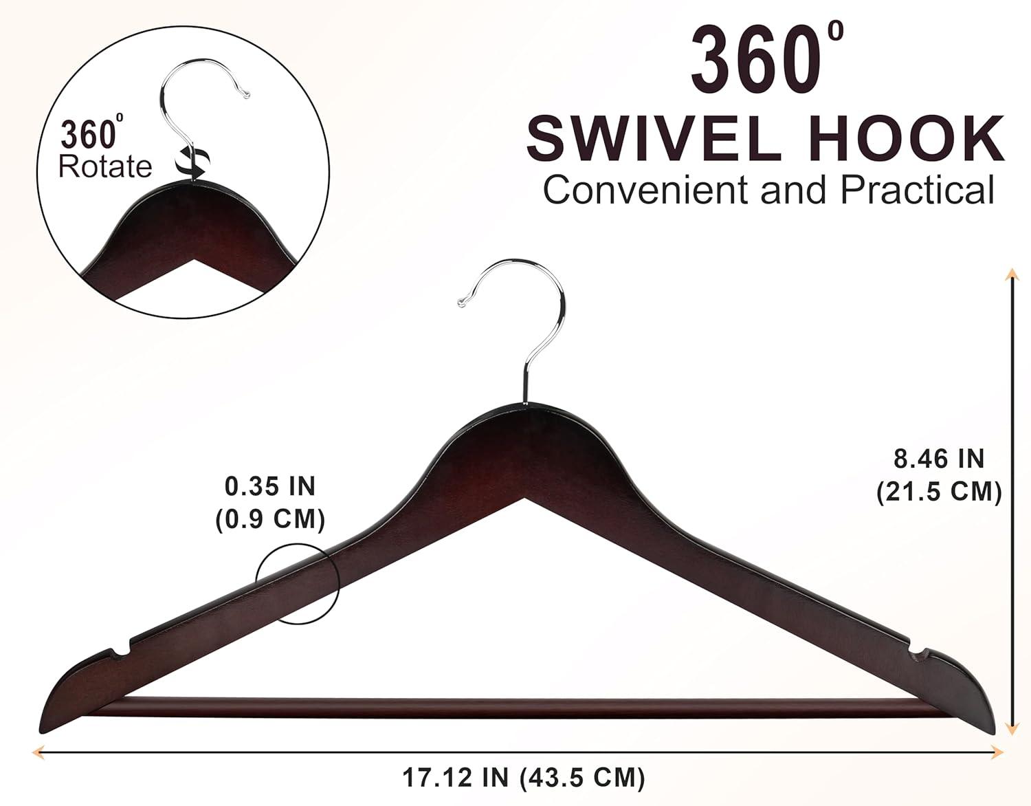 Utopia Home Premium Wooden Hangers 30 Pack – Durable & Slim Coat Hanger – Suit Hanger with 360-Degree Rotatable Hook – Wood Hangers with Shoulder Grooves (Black Color)(Cherry)