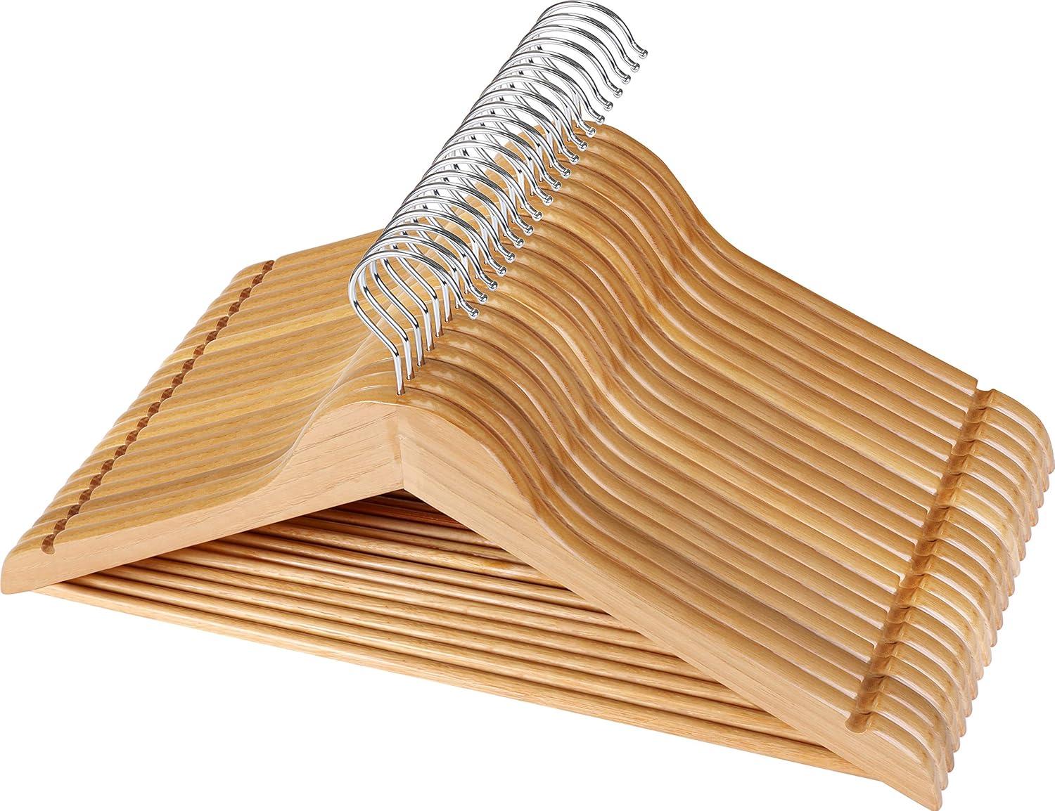 Wooden Coat Hangers For Closet – These wooden hangers for clothes are made from solid wood to hold jackets, shirts, and suits without bending. Contoured shoulders distribute weight evenly to maintain shape and prevent shoulder marks or sagging, while a smooth finish protects fabrics from snags.