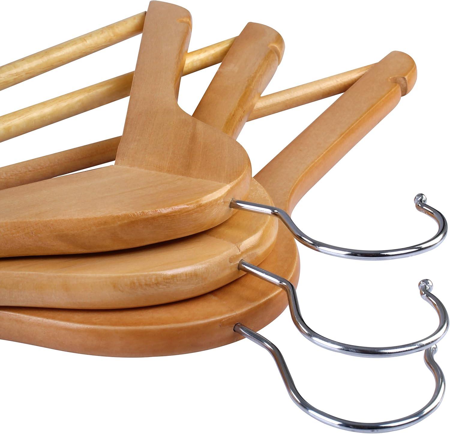 Closet Organizer Hangers – The wooden pants hangers space saving maximize closet capacity while keeping shirts, trousers, coats, pants & skirts well-arranged. Their stable frame prevents clothing deformation and creates a cleaner, more efficient wardrobe setup.